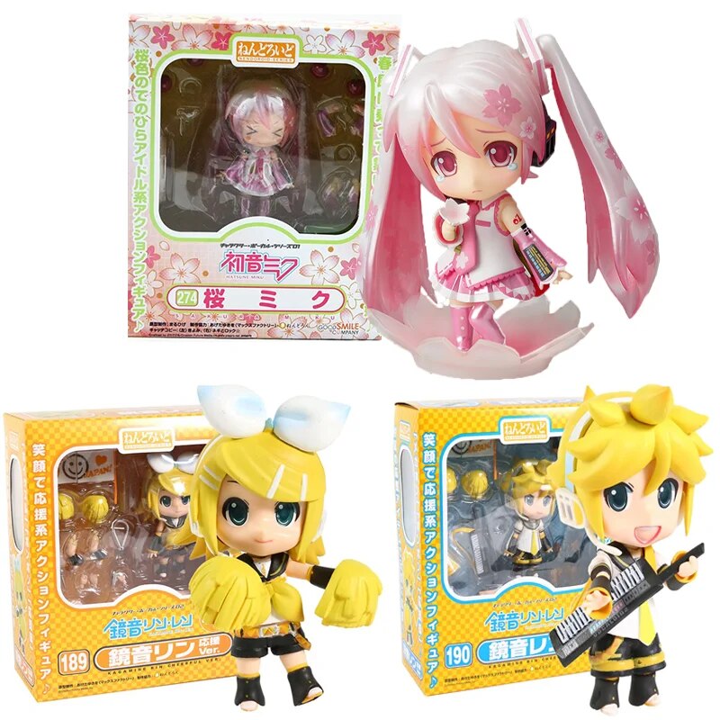 10cm Anime Hatsune Miku figura de acción Sakura Miku 274 Kagamine Rin 189 Kagamine Len 190 juguetes en miniatura de PVC Vocaloid regalo muñeca Juguetes