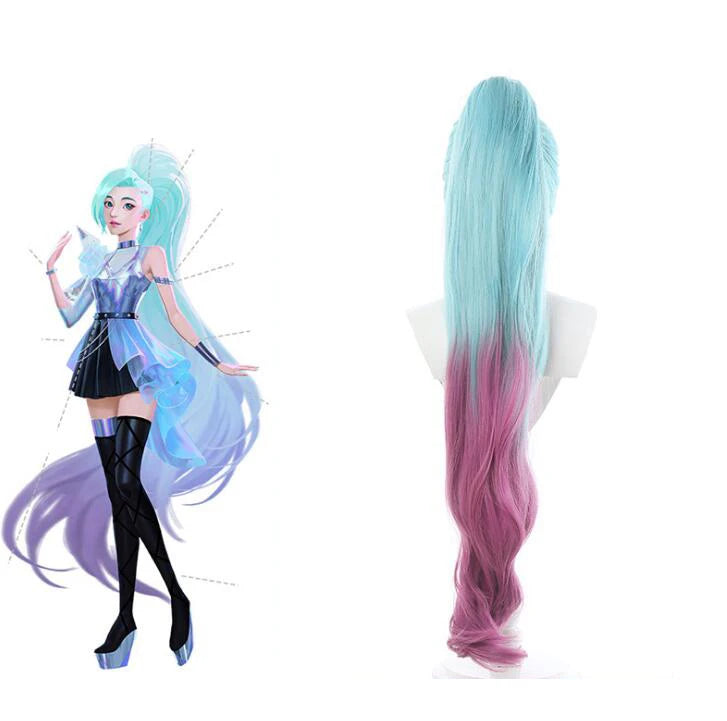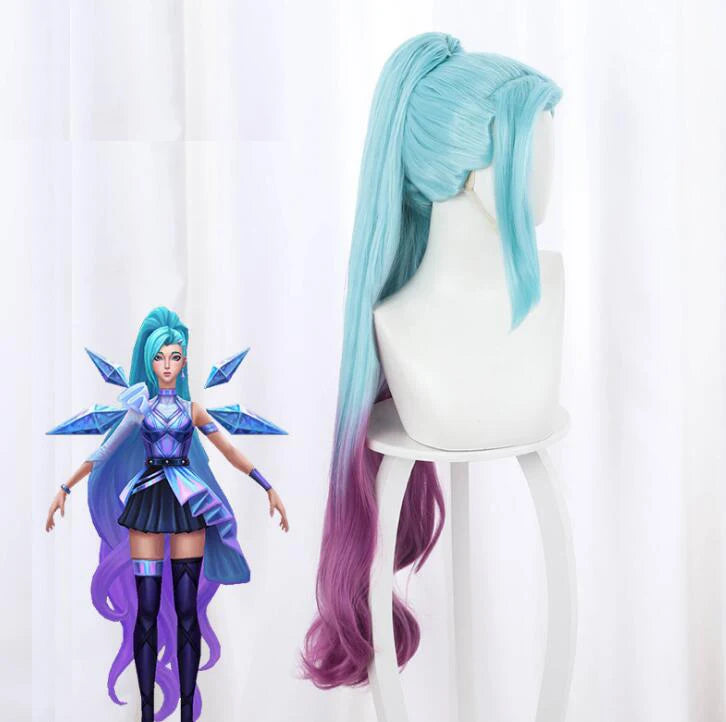 Anime Game LOL Seraphine Cosplay Wigs LOL KDA Cosplay Seraphine Blue Purple Long Gradient Heat Resistant Hair Wig