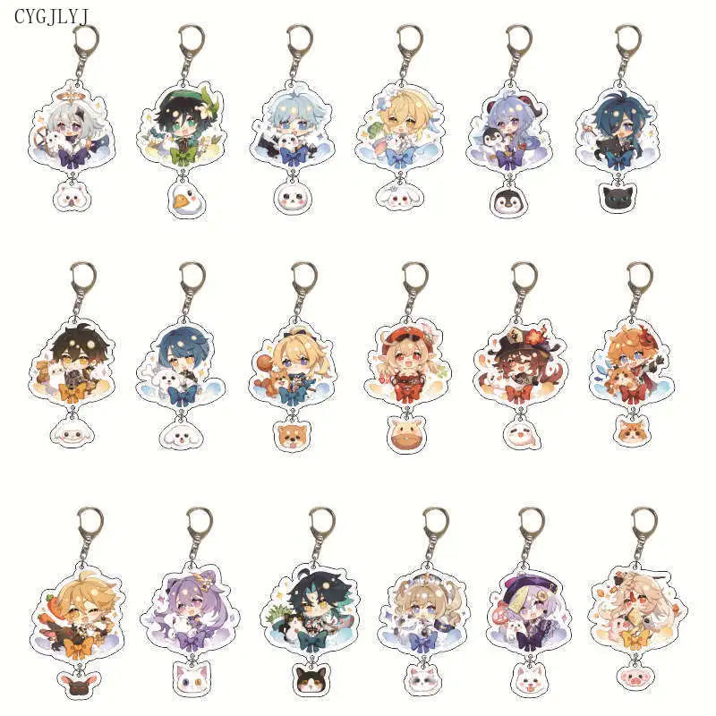 Anime Genshin Impact Zhongli Diluc Venti Paimon llavero Base acrílico soportes llavero regalo para hombres mujeres bolso llavero regalo de joyería