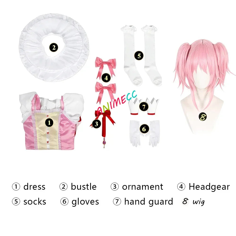 ANIMECC in Stock XS-2XL Kaname Madoka Cosplay Combats Costume Wig Anime Madoka Magica Halloween Party Outfits for Women