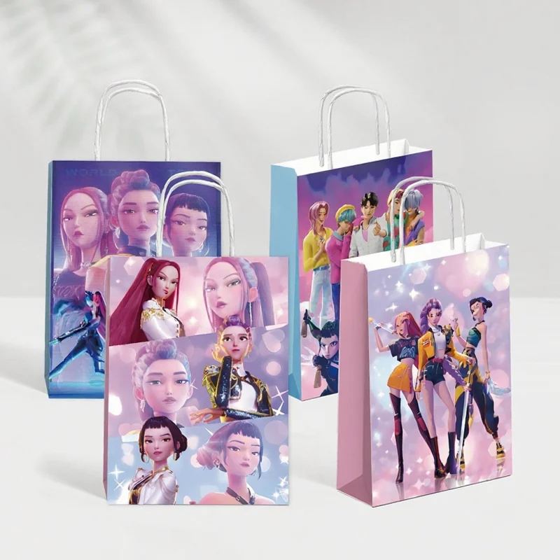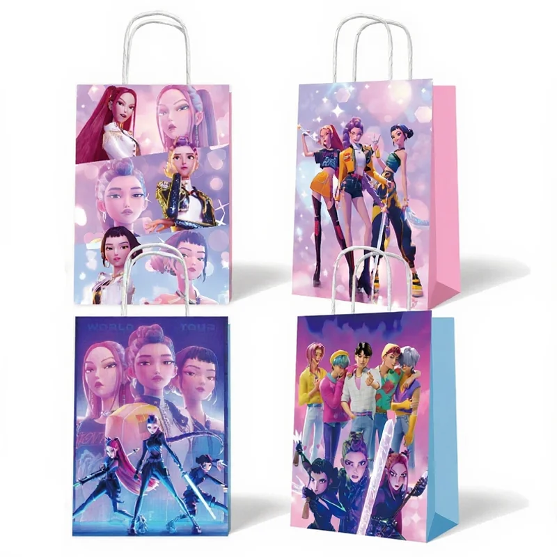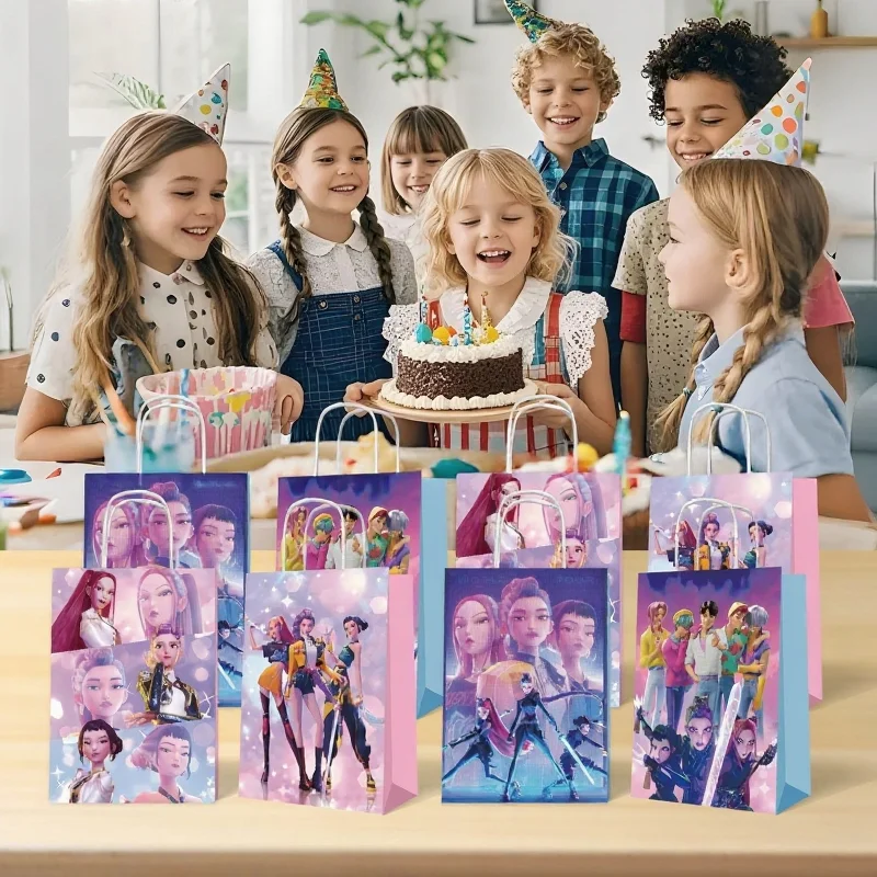 12pcs Kpop Demon Hunters Birthday Party Gift Bag Candy Loot Handle Treat Bag Kid Biscuit Package Baby Shower Decoration Supplies