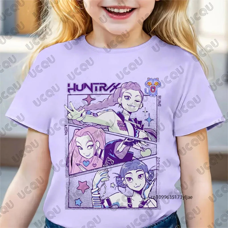 2025 New KPop Demon Hunters Cartoon Print Kids Cotton T-shirts Summer Short Sleeve Tees Boys and Girls Clothes Casual Tops