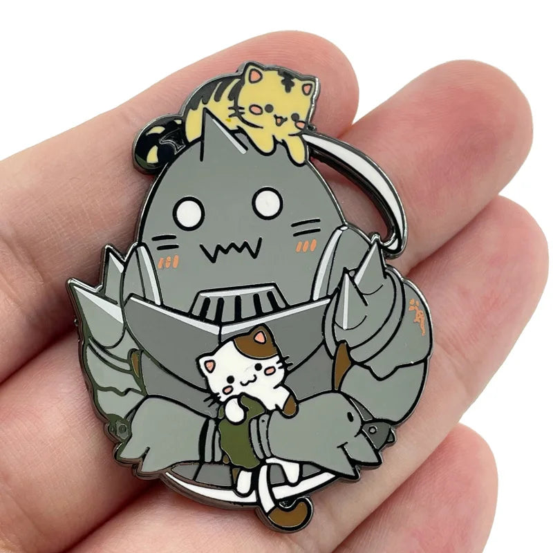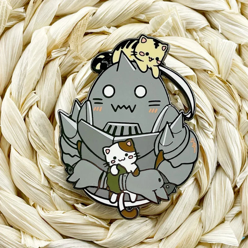 Anime Fullmetal Alchemist Alphonse Elric and Cat Cute Cartoon Metal Alloy Enamel Clothes Bag Hat Lapel Badge Brooch Pin