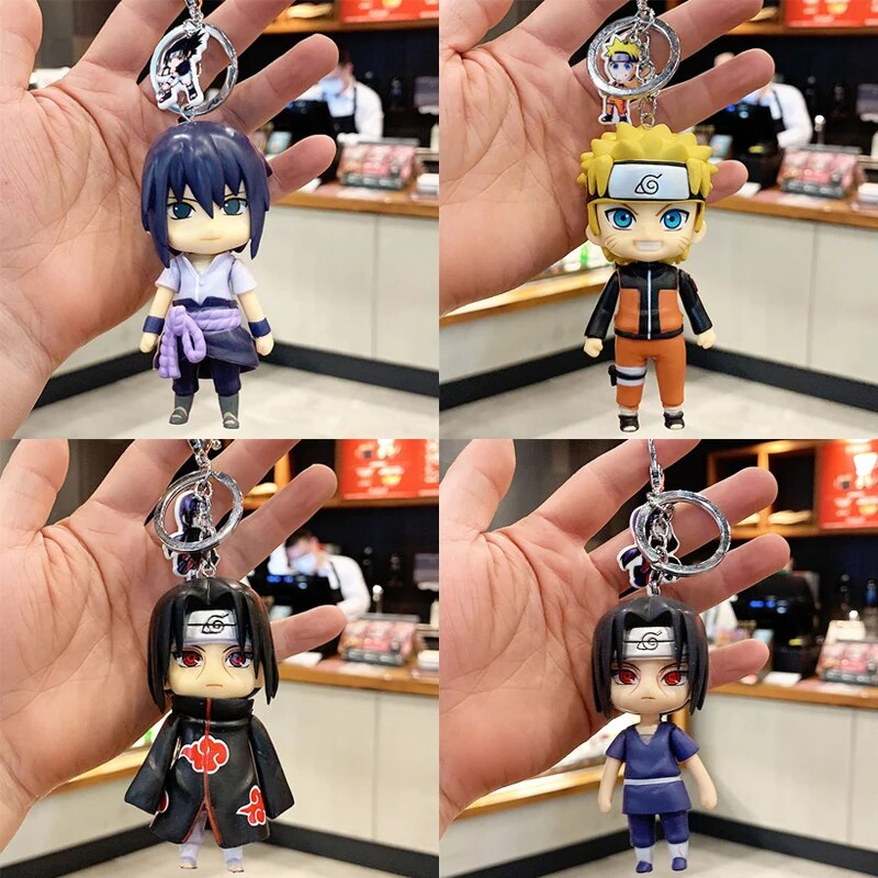 bandai naruto action figures Keychain Accessories Holder Cartoon Uzumaki Naruto Uchiha Itachi Sasuke Akatsuki Model Funny Creative Keychain Cartoon Bag Pendant Decorations Toys for children adult Gift