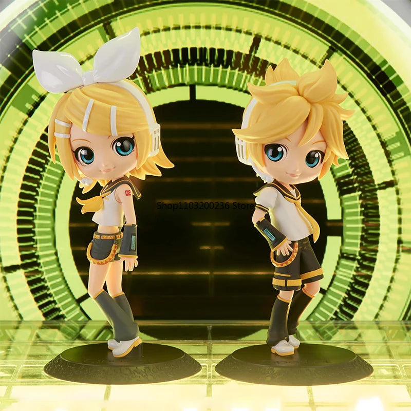 Bandai Original VOCALOID Kagamine Len Kagamine Rin Q Posket Anime Action Figure Hobbies Collectibles Model Toys