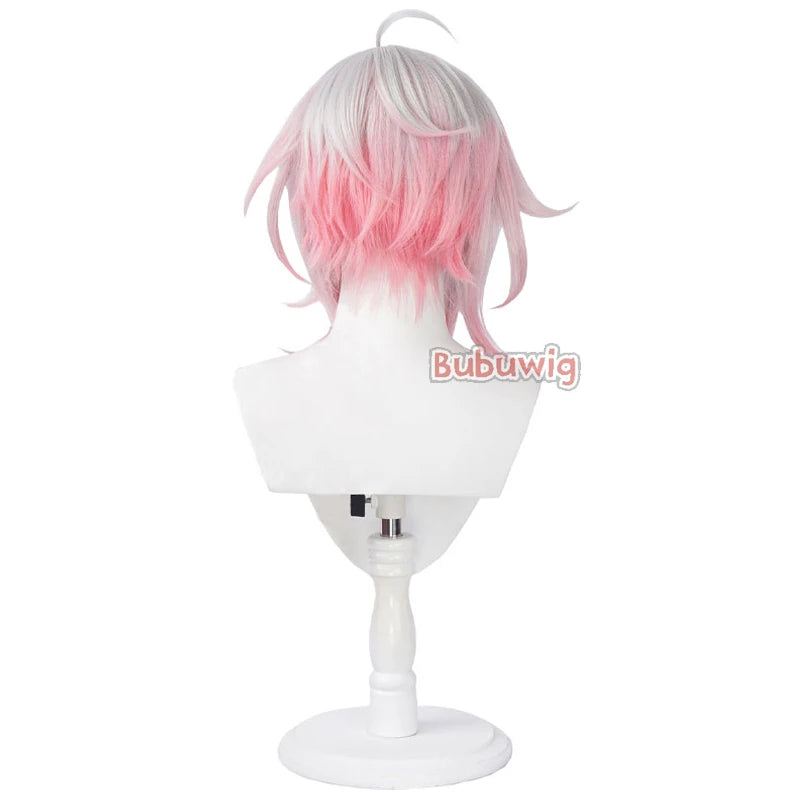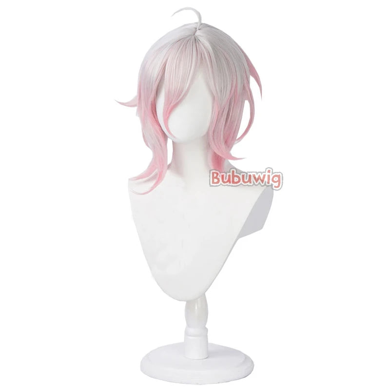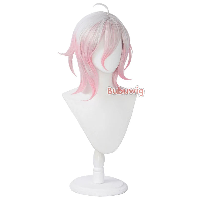 Bubuwig Synthetic Hair Briar Cosplay Wigs Game LOL Briar 40cm Women Medium Long Straight White Mixed Pink Wig Heat Resistant