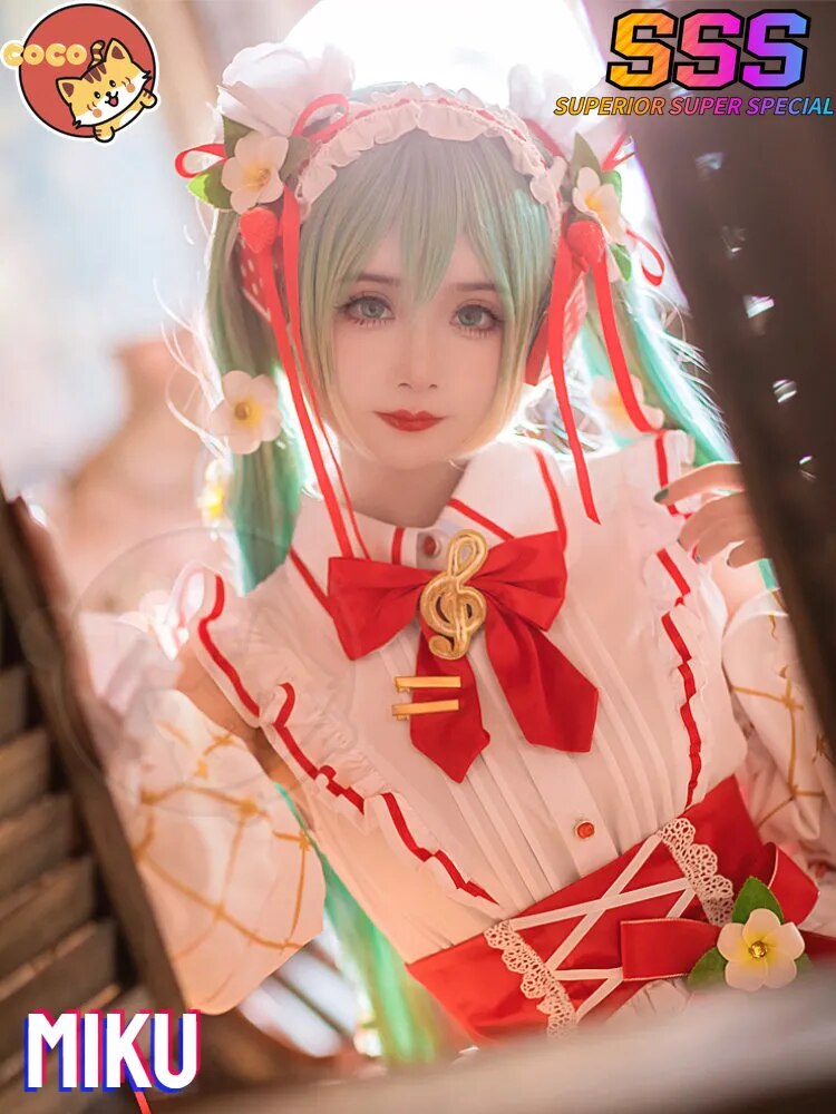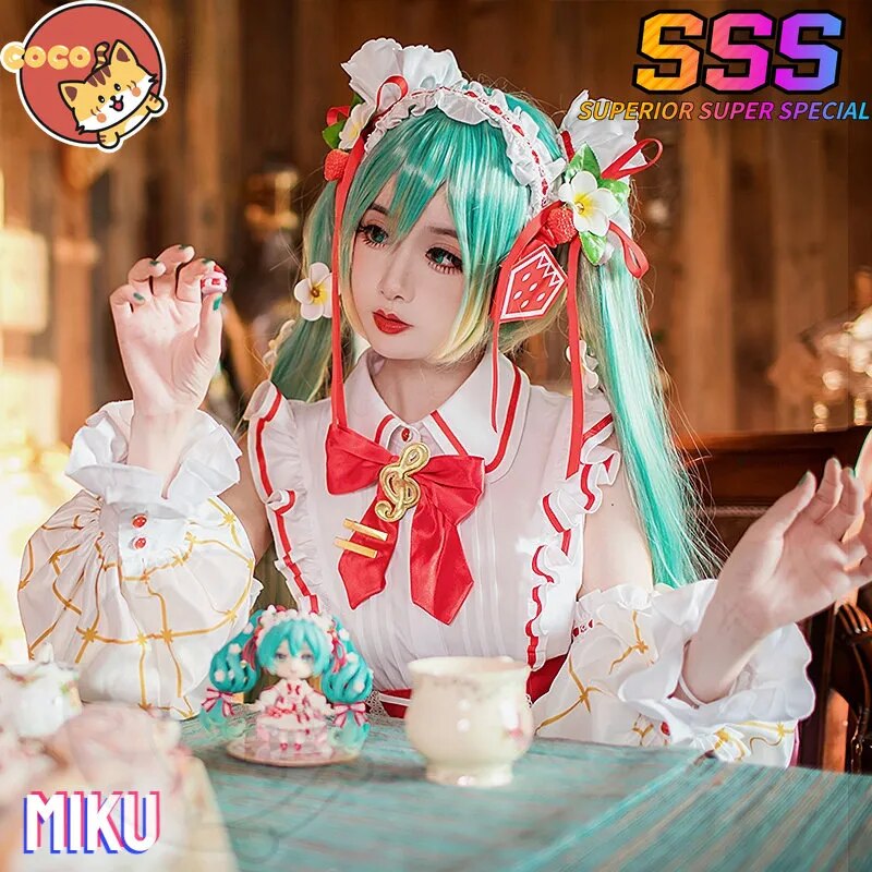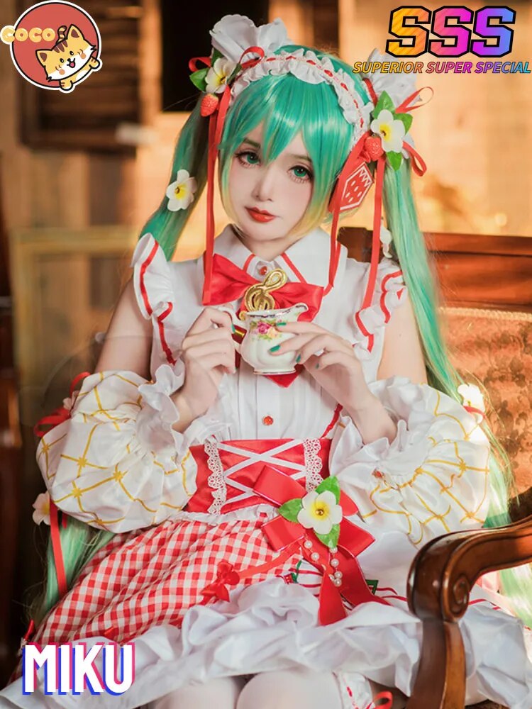 CoCos-SSS VOCALOID 15th Anniversary Miku Cosplay Costume VOCALOID Miku x Strawberry Cos Miku Strawberry Lolita Dress and Wig