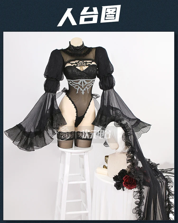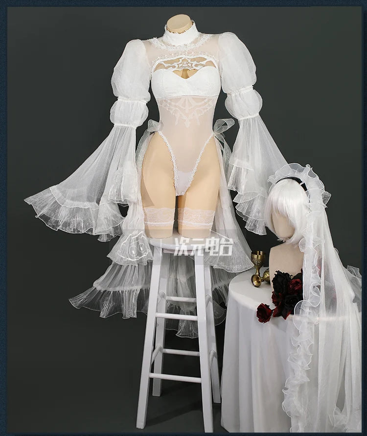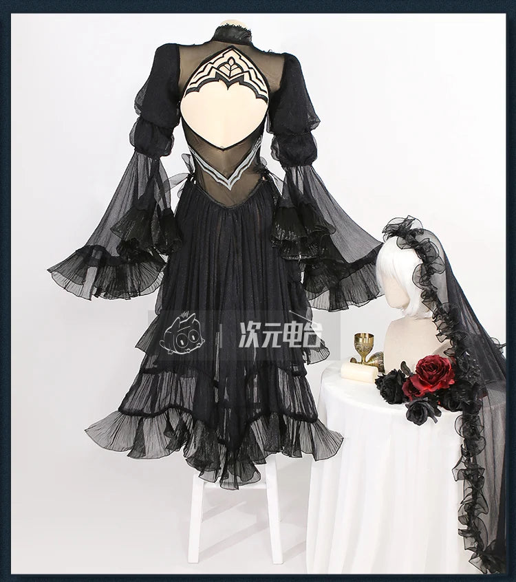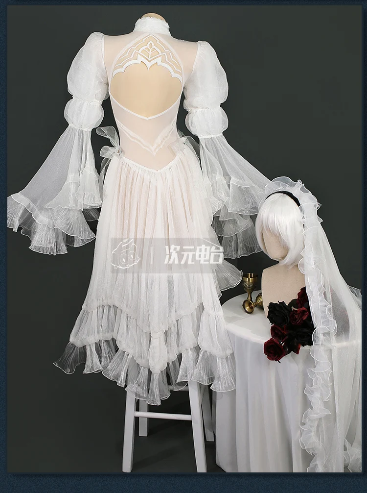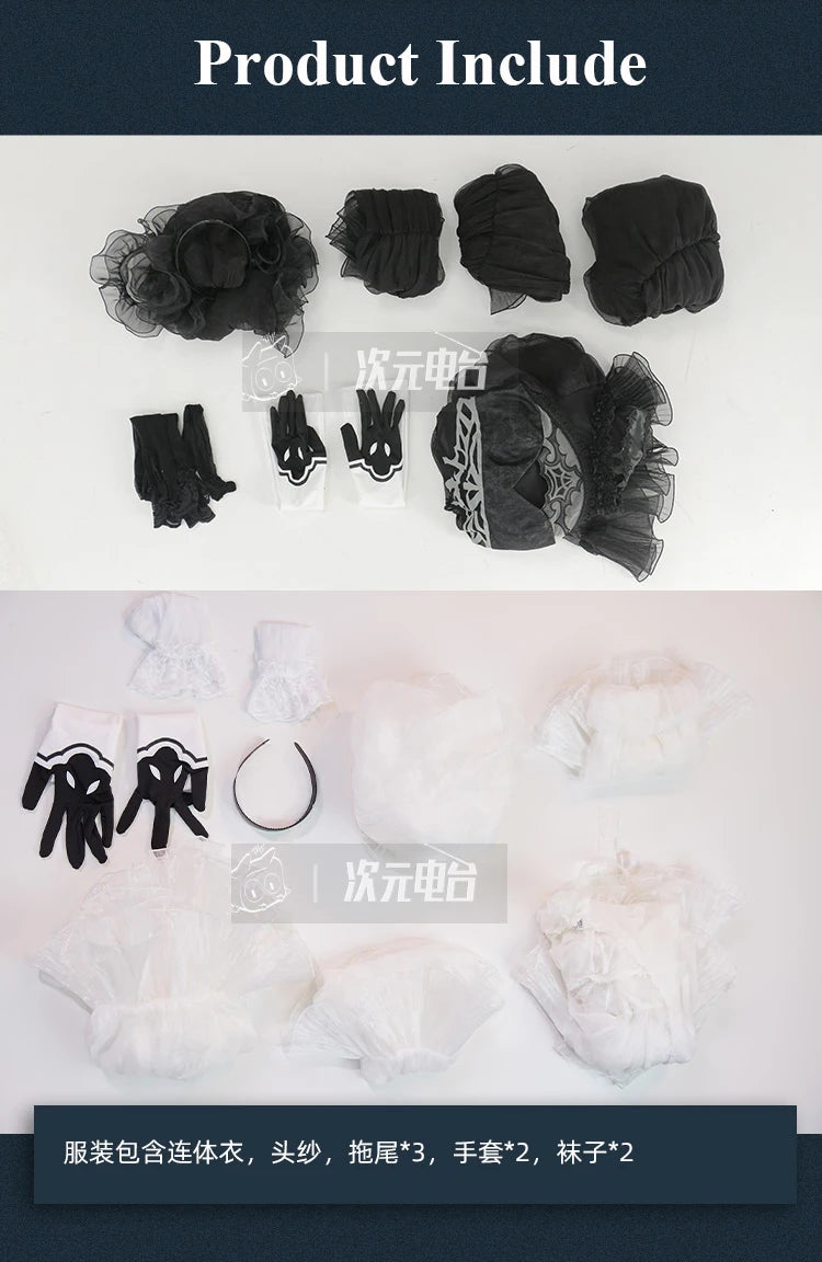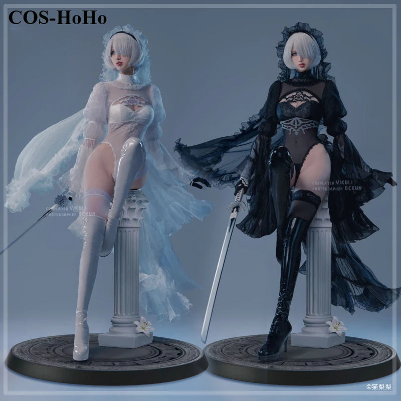 COS-HoHo Anime Game NieR Automata 2B Black White Flower Wedding Dress Uniform Cosplay Costume Halloween Party Outfit Women
