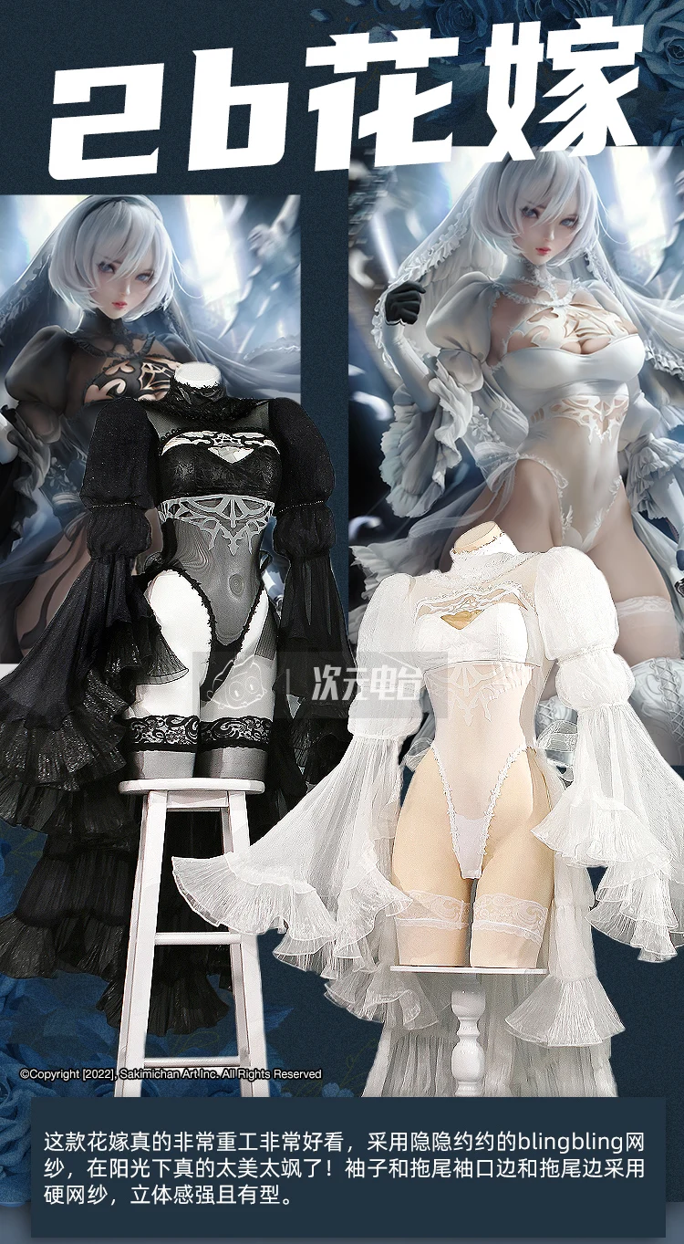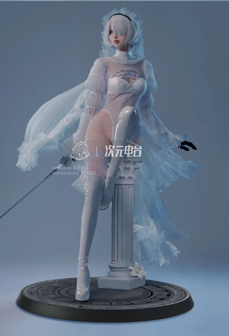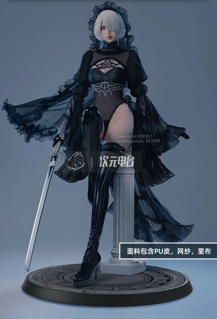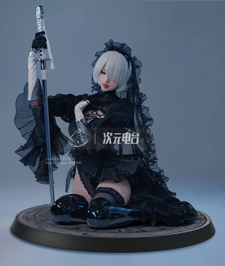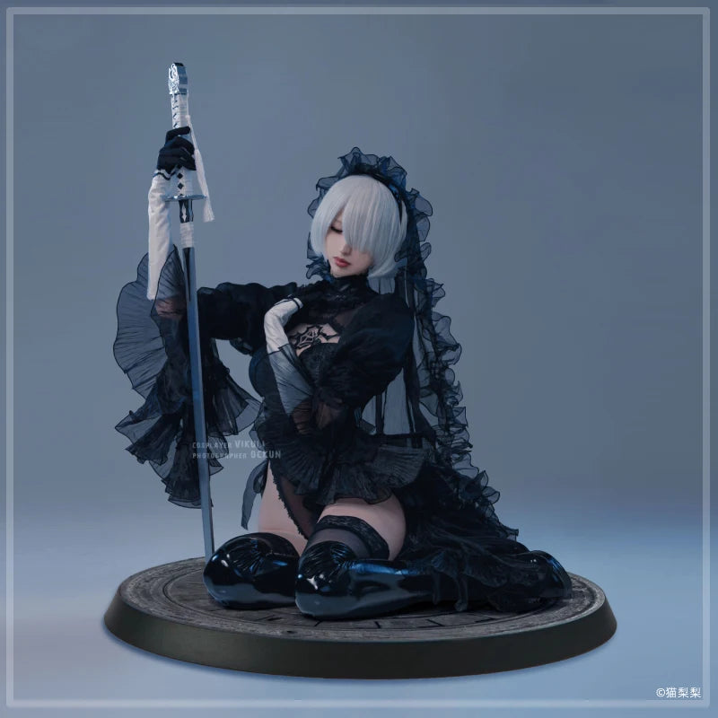 COS-HoHo Anime Game NieR Automata 2B Black White Flower Wedding Dress Uniform Cosplay Costume Halloween Party Outfit Women