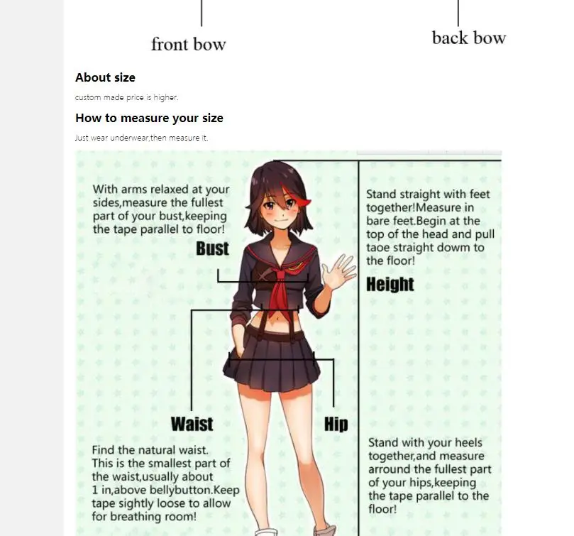 Please leave a message about your bust,waist,hip,height,weight,thank you.