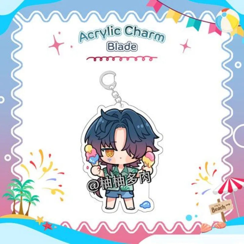 Dan Heng Jing Yuan Anime KeyChain Honkai Star Rail Men Key Chain for Women sand beach Blade Figure Acrylic Keyring Pendant Gift