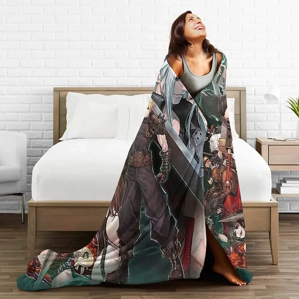 Final Fantasy VII Characters Background Blankets Soft Warm Flannel Throw Blanket Bedding for Bed Living room Picnic Travel Couch