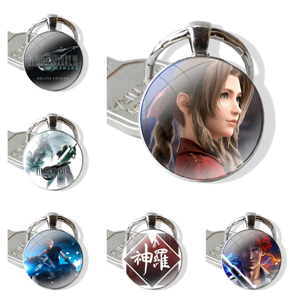 Final Fantasy VII FF7 Game Badge 50mm Cloud Strife Aerith Tifa Lockhart Sephiroth Reno Tseng Glass Cabochon Keychain