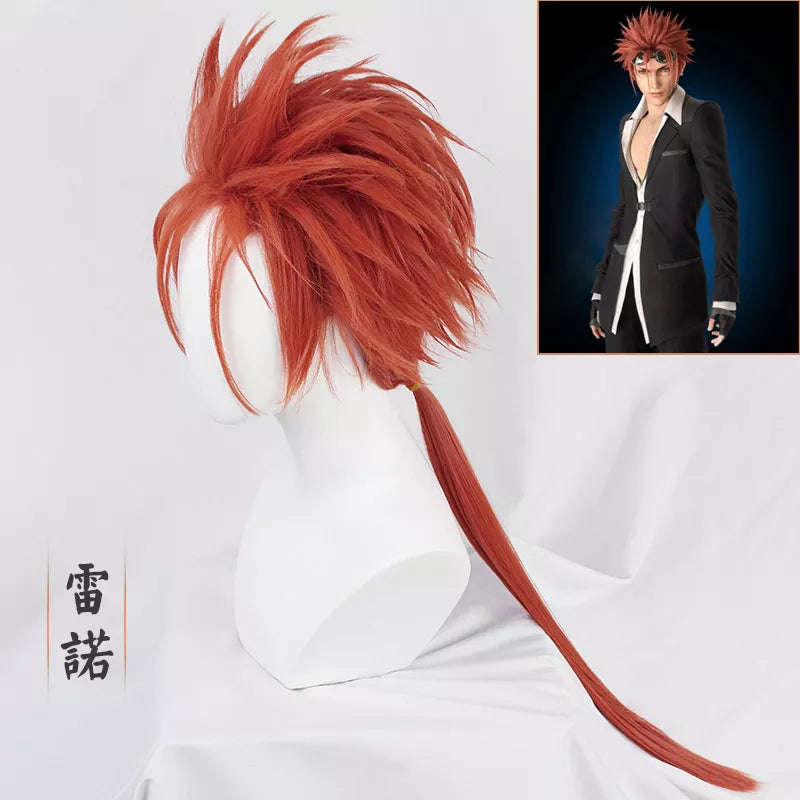 Final Fantasy VII Reno Wigs 50cm Orange Half Long Styled Cosplay Costume Wigs High Temperature Game Wigs + Wig Cap