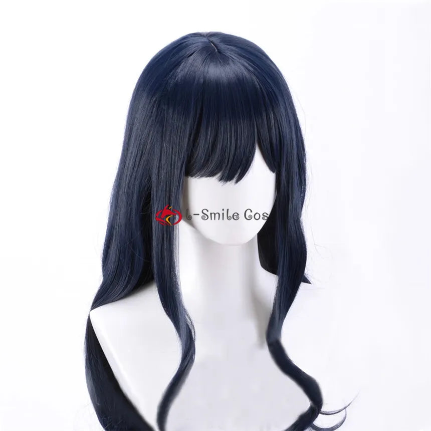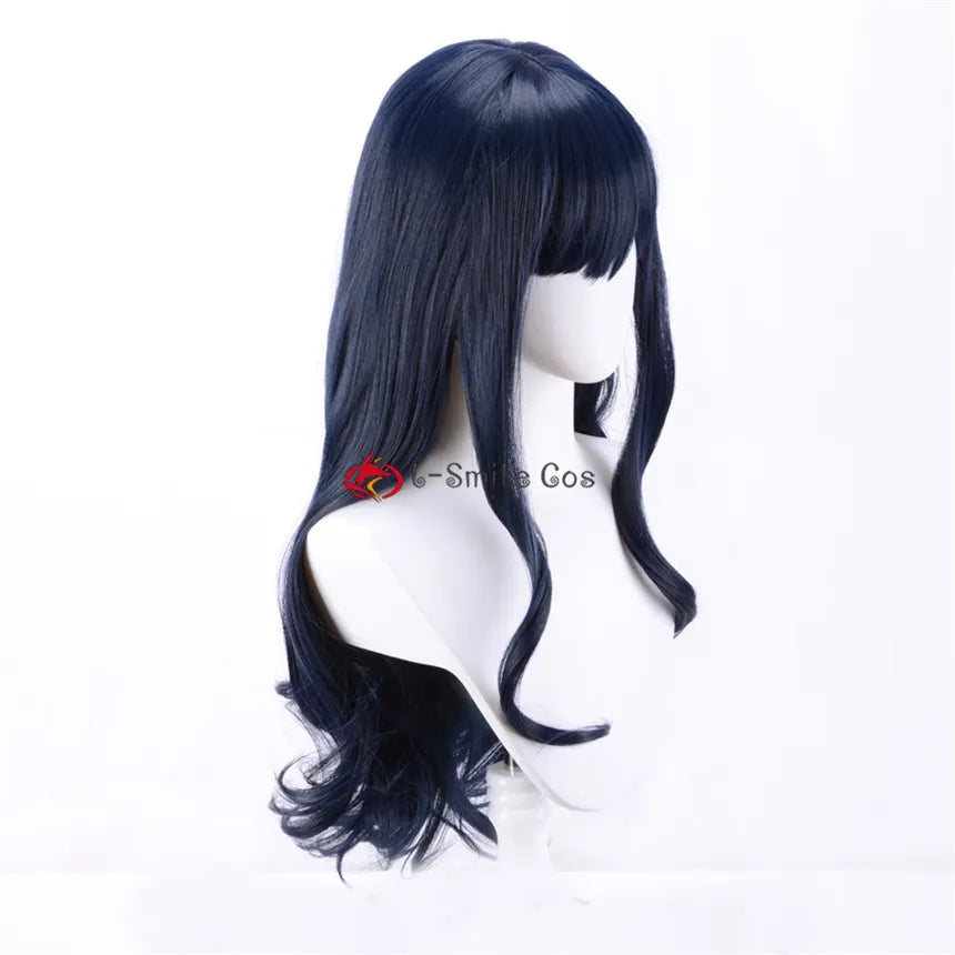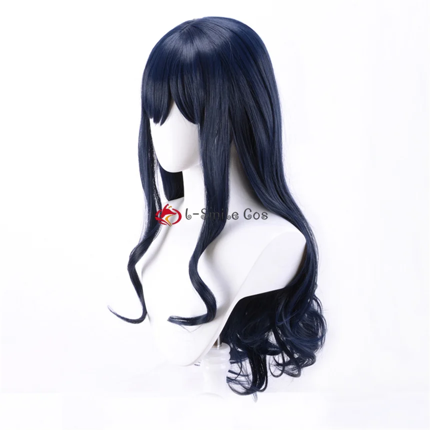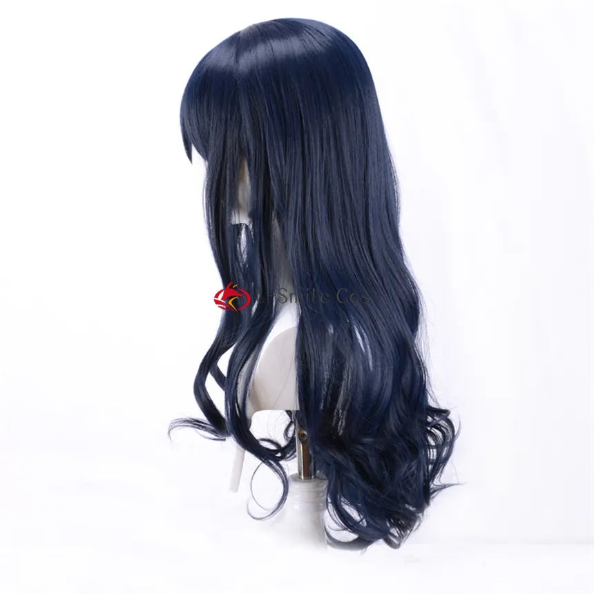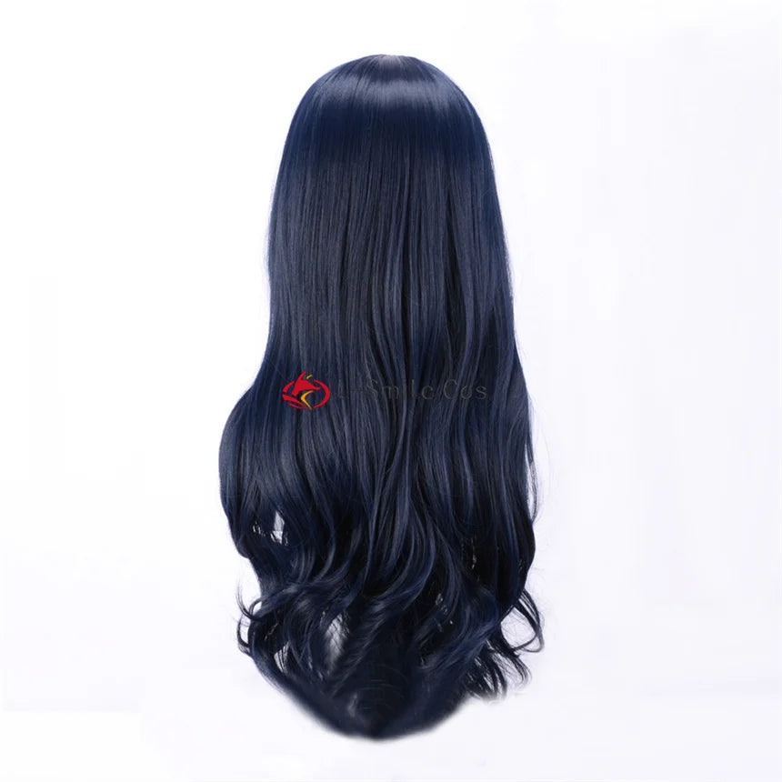 Final Fantasy XIV 14 Cosplay FF14 FFXIV Gaia Wig 80cm Long Navy Blue Curly Bangs Heat Resistant Synthetic Hair + Wig Cap