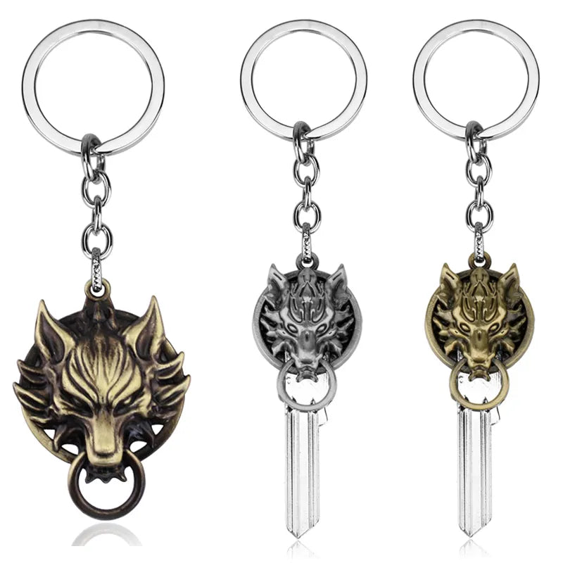 Game Final Fantasy Keyring Keychain Vintage Gothic Wolf Head Key Chain Key Holder Animal Wolf Key Pendant Key Ring Jewelry