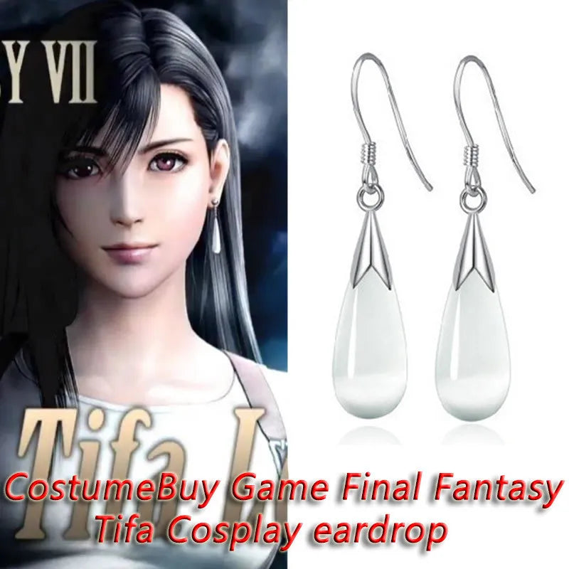Game Final Fantasy Tifa Lockhart Earrings Women Girl Cosplay Drop Earring Imitation Pearl Ear Clip Jewelry Ear Studs Gift