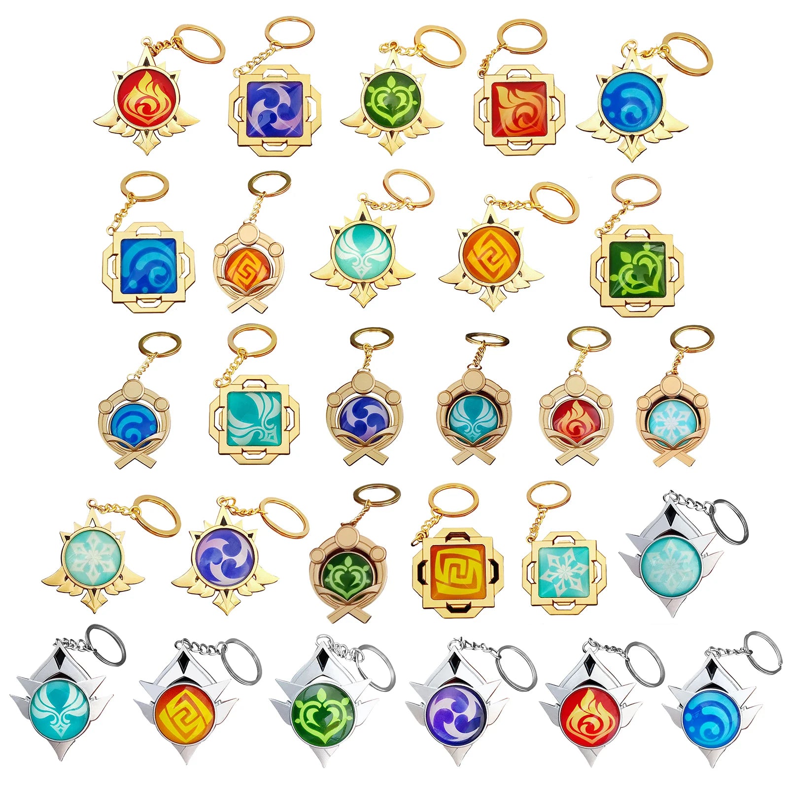 Game Genshin Impact Vision Lnazuma Ganyu Keqing Wendi Xiao Keychain Luminous Weapons Eye Of Original God Toy KeyRing