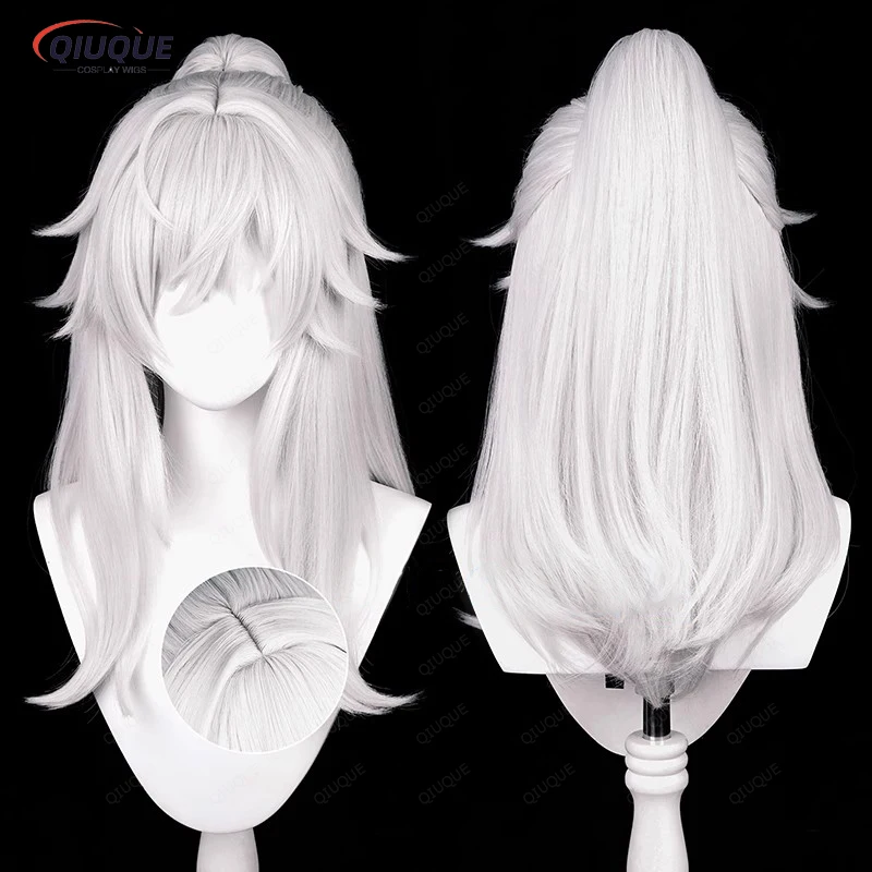 Game Honkai: Star Rail Jing Yuan Cosplay Wig Long Silver White Heat Resistant Synthetic Cosplay Costume Wig + Track + Wig Cap