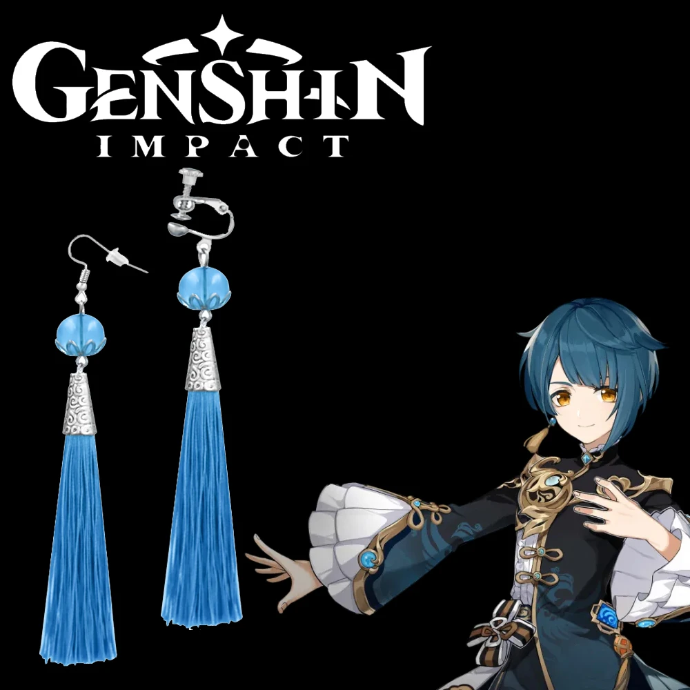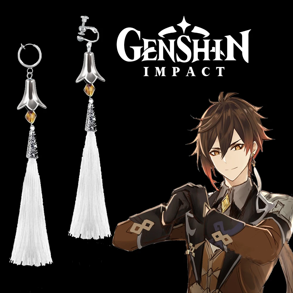 Genshin Impact Tartaglia Earrings Hu Tao Venti Kaeya Alberich Aether Qiqi Keqing Cosplay Drop Earrings for Women Earclip Jewelry