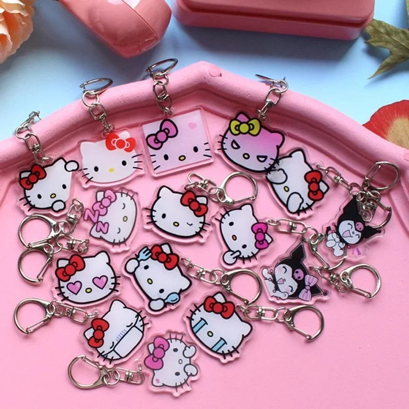 Hello Kitty Acrylic Keychain Accessories Sanrio Anime Figures Key Chain Pendant Cartoon Cosplay Chains Keyring Accessoried Gifts