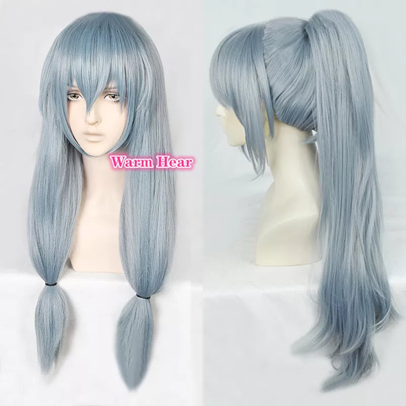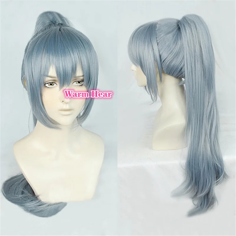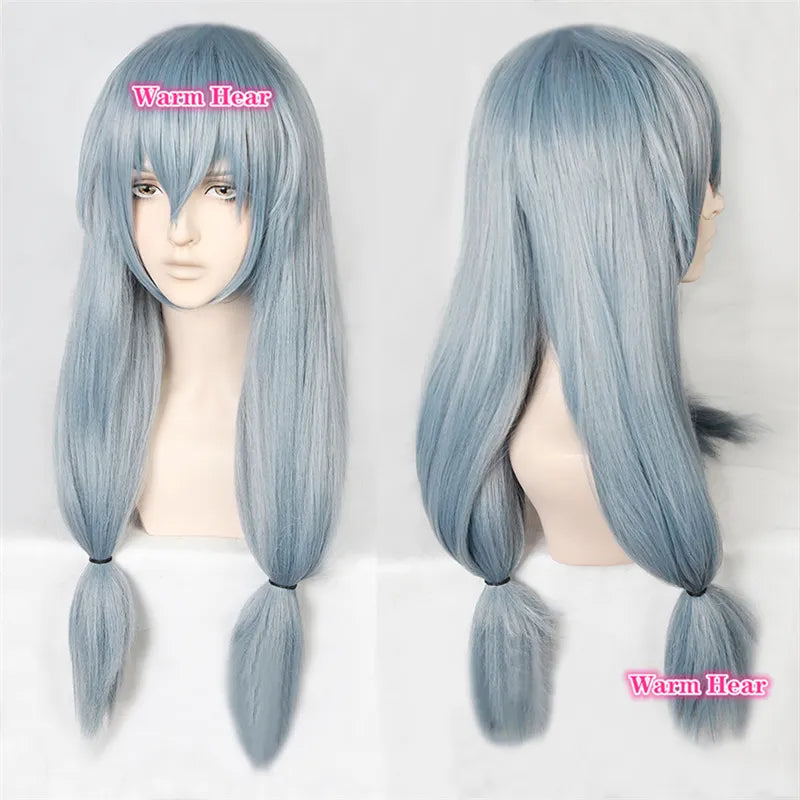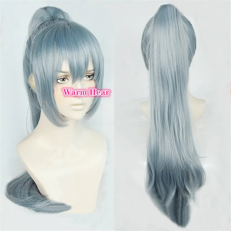 High Quality Anime Jujutsu Kaisen Mahito Wigs Light Blue Heat Resistant Synthetic Hair Clip Ponytail Cosplay Wig + a wig cap