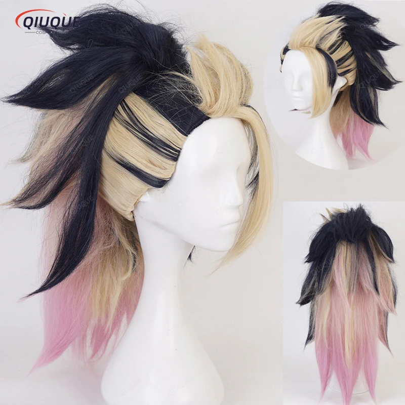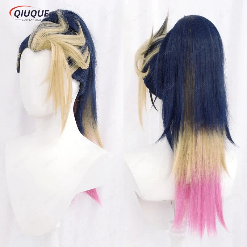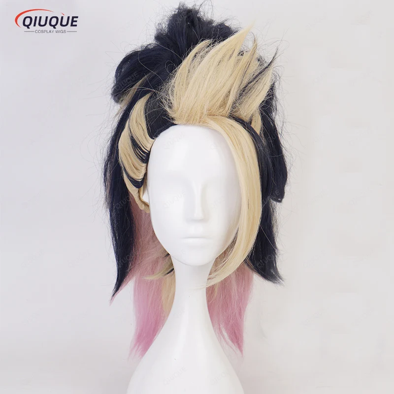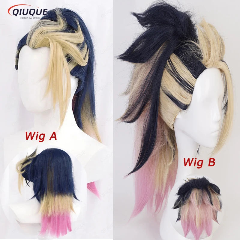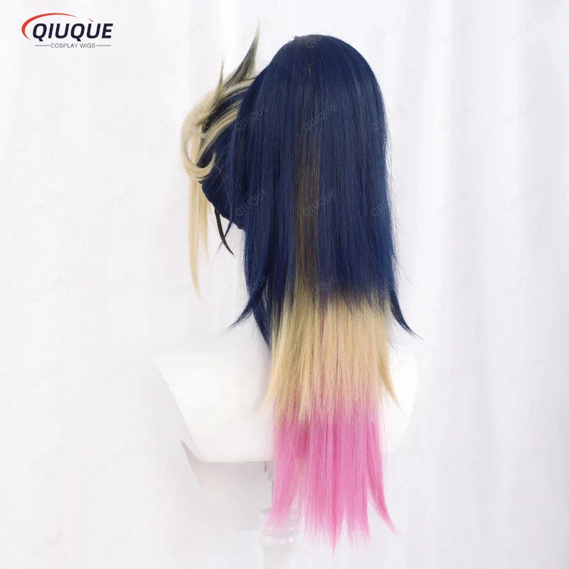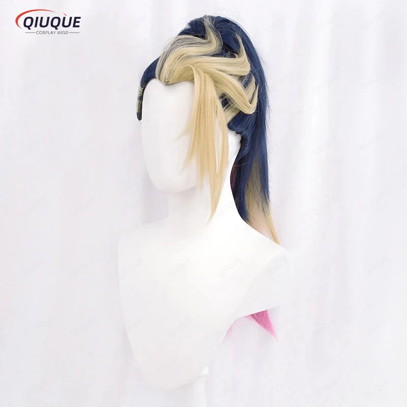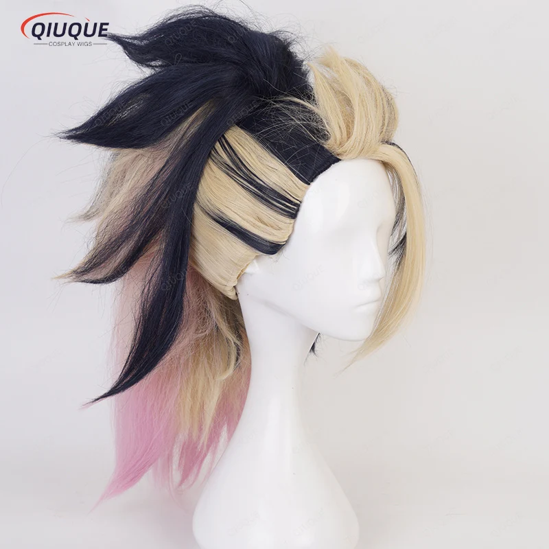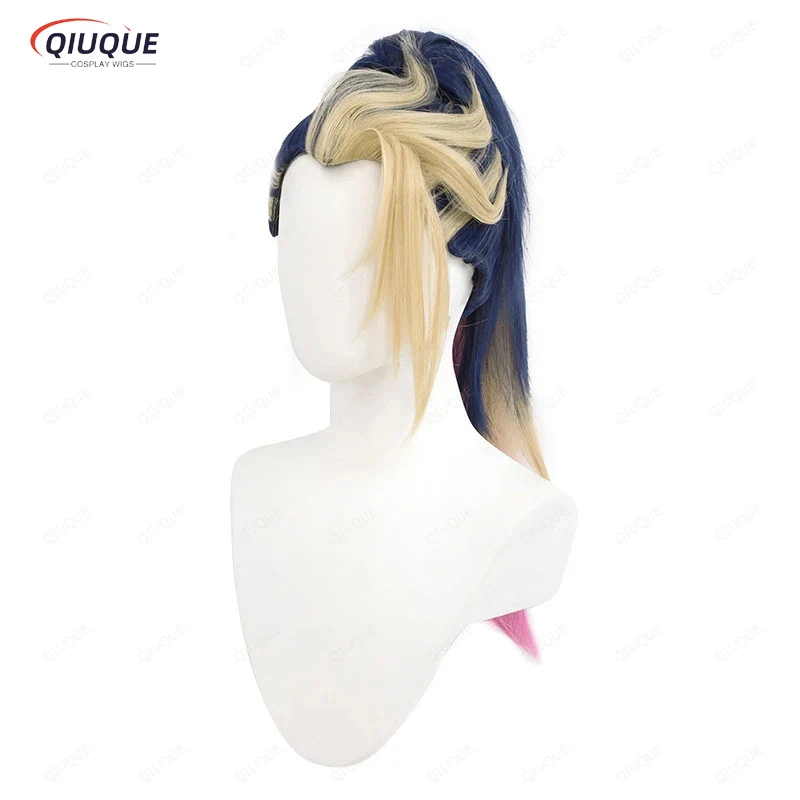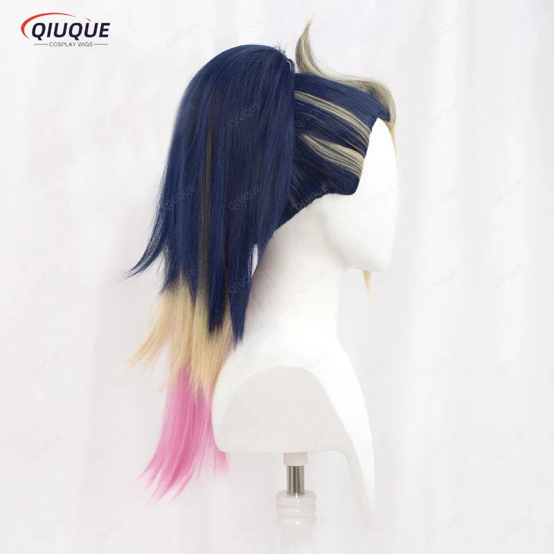 High Quality KDA Akali Mixed Color Ponytail Wig LOL Akali Heat Resistant Synthetic Hair Halloween Party Wigs + Free Wig Cap
