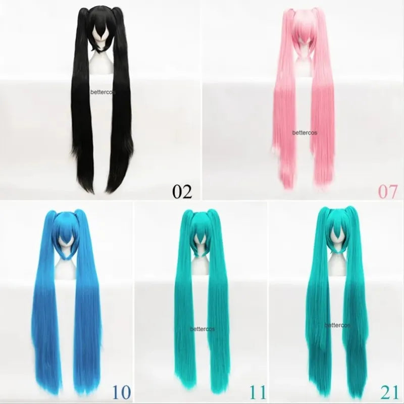 High Quality Vocaloid Miku Cosplay Wig Long Heat Resistant Synthetic Hair Clip Ponytails Wigs + Wig Cap