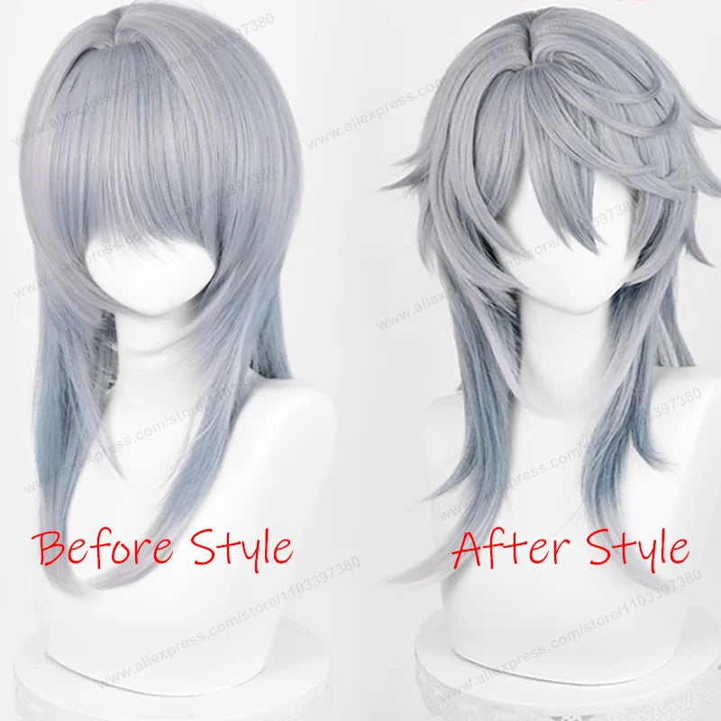 Honkai:Star Rail Sunday Cosplay Wig 52cm Gray Blue Gradient Hair Anime HSR Cosplay Heat Resistant Synthetic Wigs