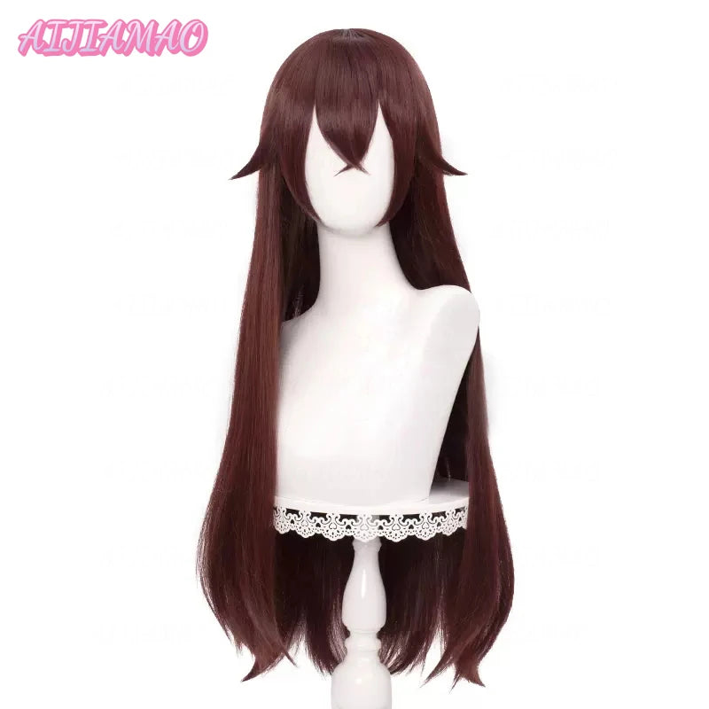 Impact Amber Cosplay Wig 80cm Long Straight Brown Wig Cosplay Anime Cosplay Wigs Heat Resistant Synthetic Wigs+Wig Cap