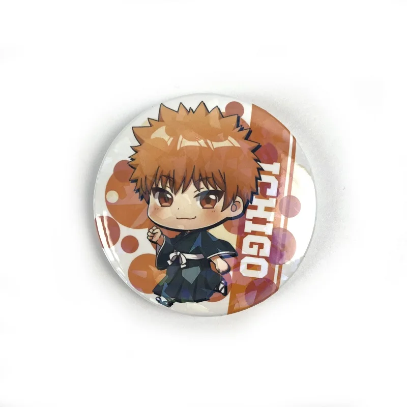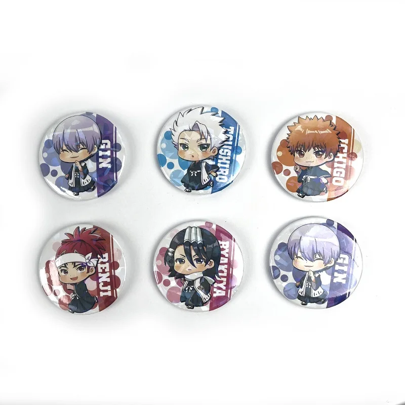 Japan Anime BLEACH Figures Kurosaki Ichigo Kuchiki Byakuya Abarai Renji Metal Laser Badges Bag Pins Brooch Decor Toy Fans Gift