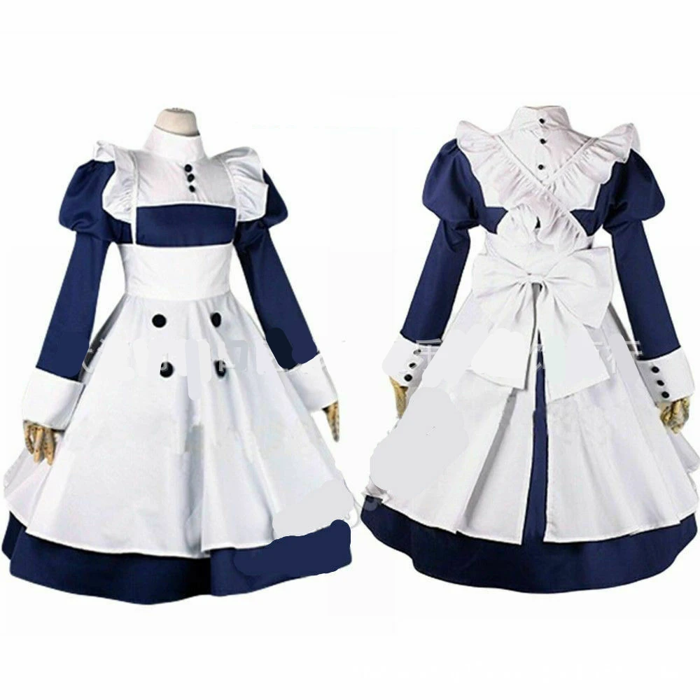 Japanese Anime Black Butler Maid Kuroshitsuji Mey Rin Maid Costume Woman Cosplay Costumes Dress + Apron For Halloween Party