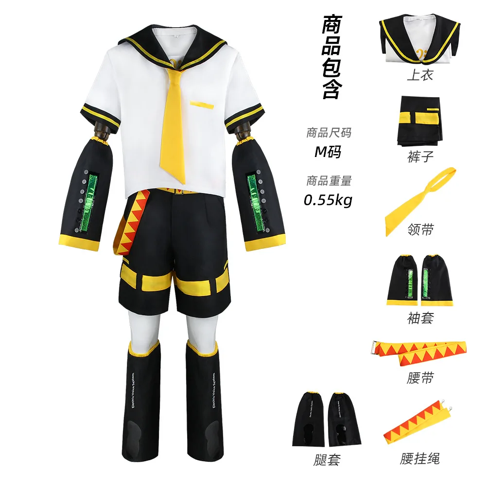 Japanese anime Rin Len Halloween Uniform Kagamine Len + Rin Cosplay Complete Costumes sets Tops+Shorts women men