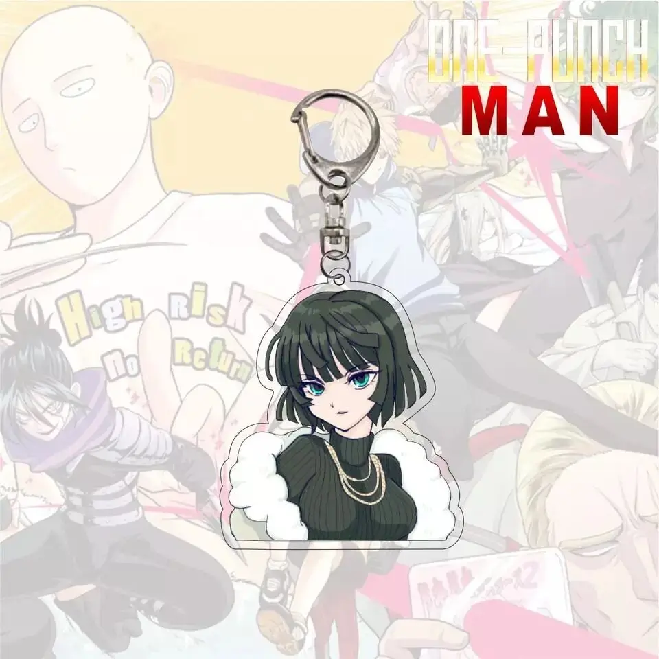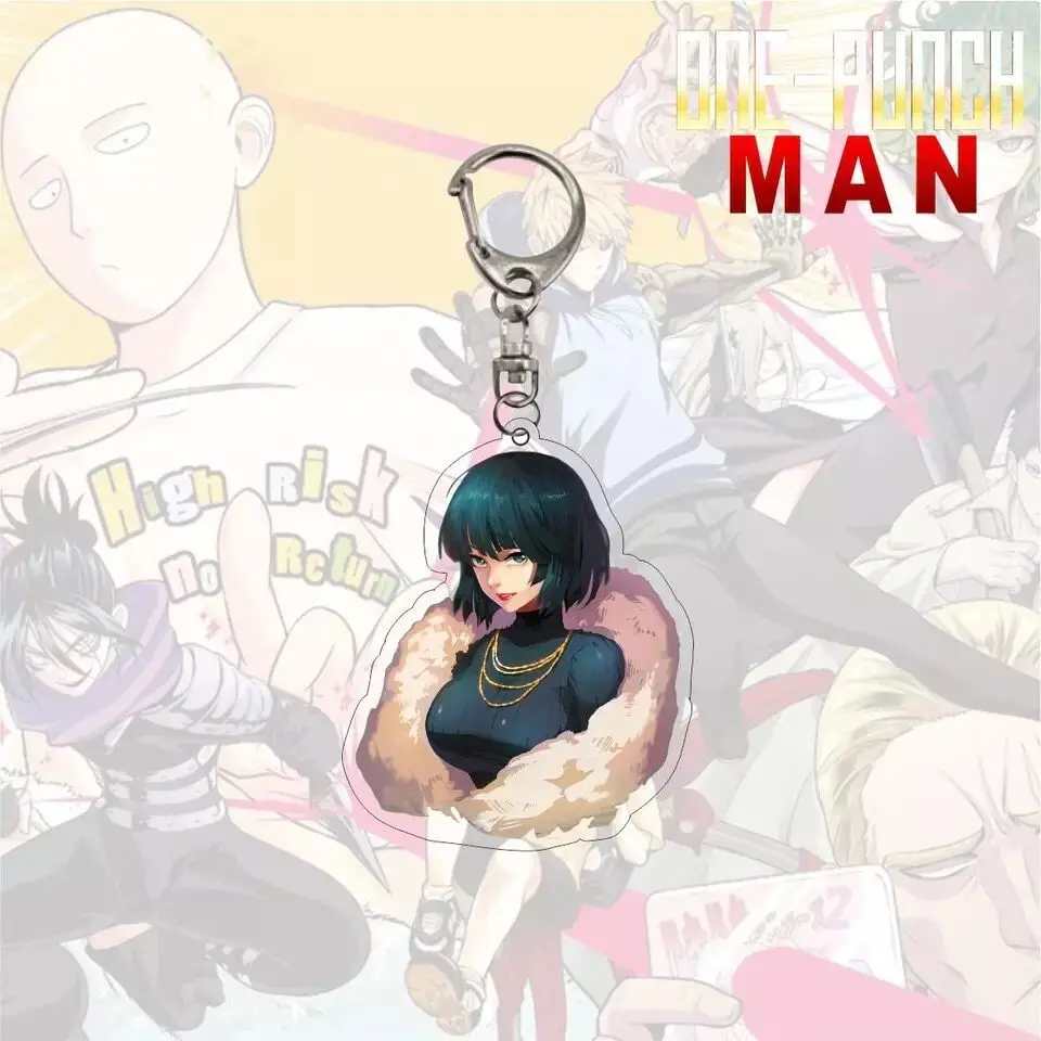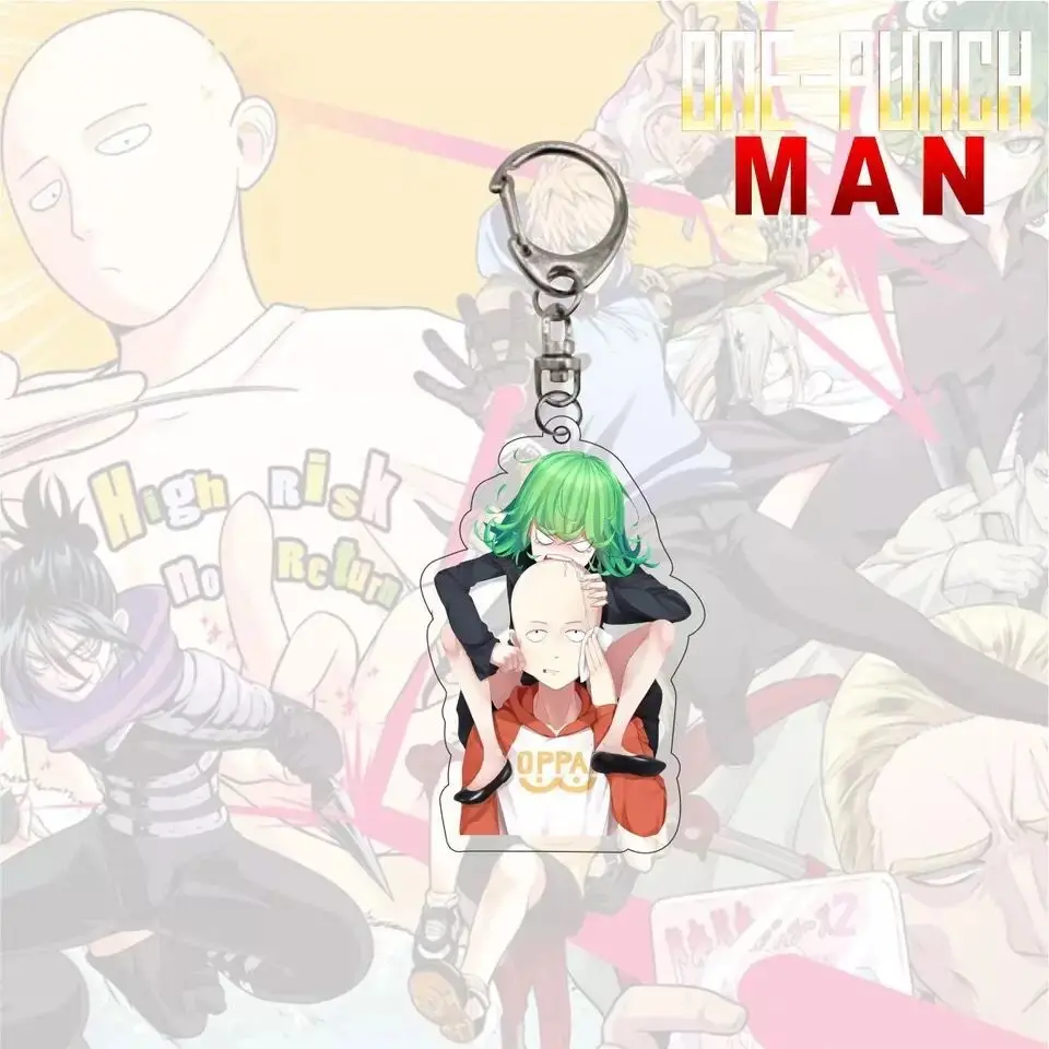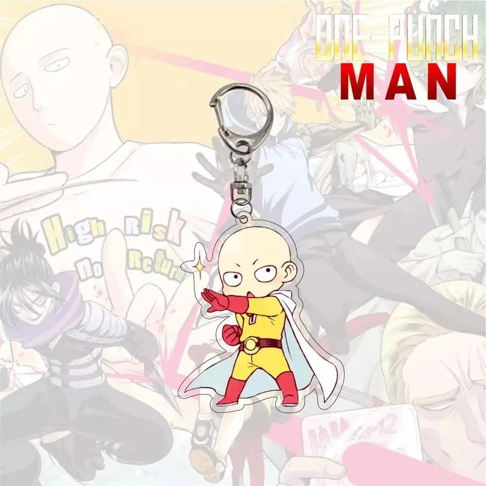 Japanese Cartoon One Punch Man Key Chain Cool Anime Figures Acrylic Double-Sided Pendant Key Ring Car Keychain Toy Gift for Fans