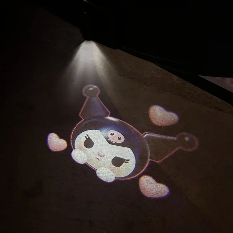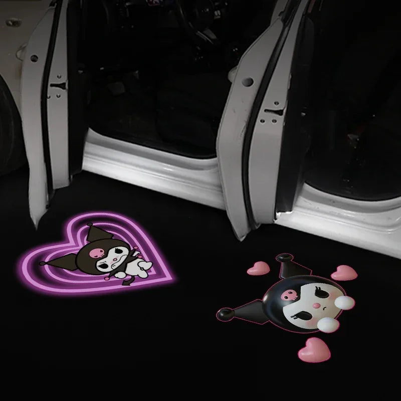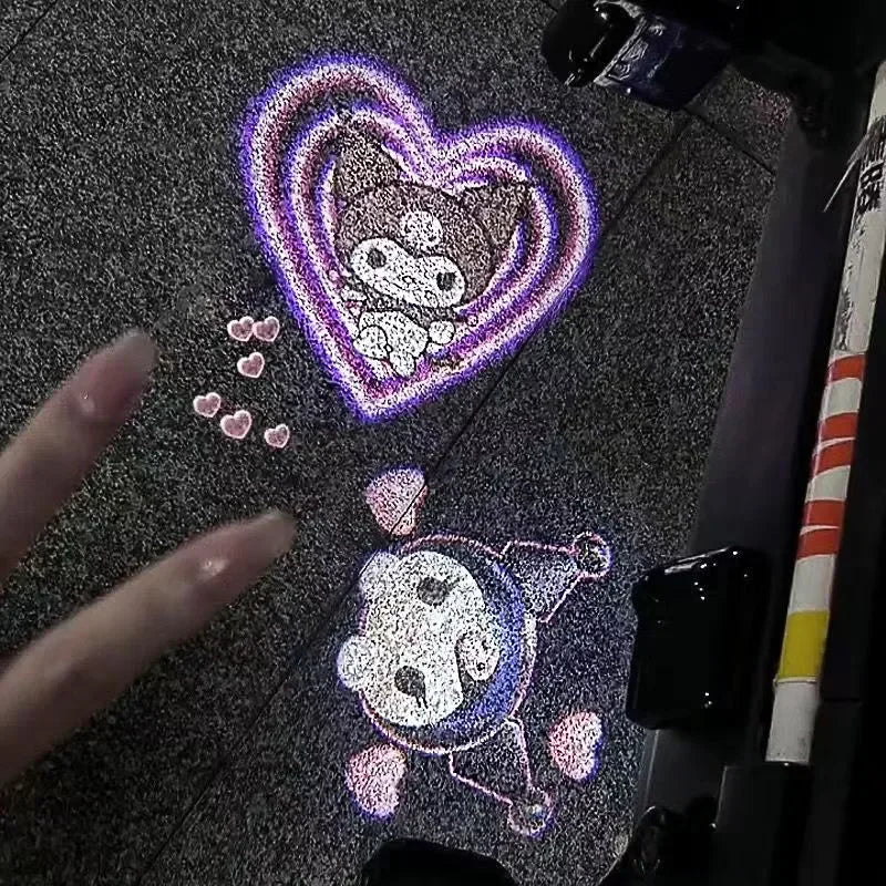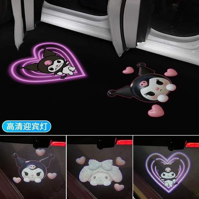 Kuromi Cinnamoroll My Melody Car Door Welcome Lamp Hd Ambient Light Induction Open The Door Projection Cute Car Decoration