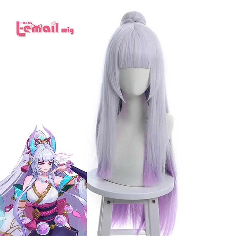 L-email wig Synthetic Hair Spirit Blossom Syndra Cosplay Wigs LoL Cosplay Long Gradient Wig with ponytail Heat Resistant Wig