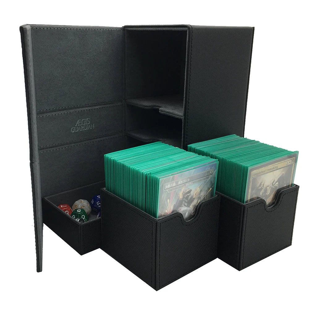 Capacity: 200+ double sleeved cards or 400+unsleeved cards and a lot of dices