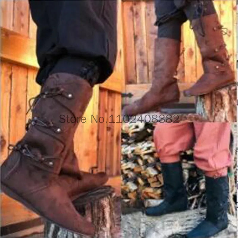 Men Medieval Viking Costume Retro Knight Boots Larp Shoes PU Leather Warrior Cosplay Fancy Carnival Party Anime Shoes Nordic