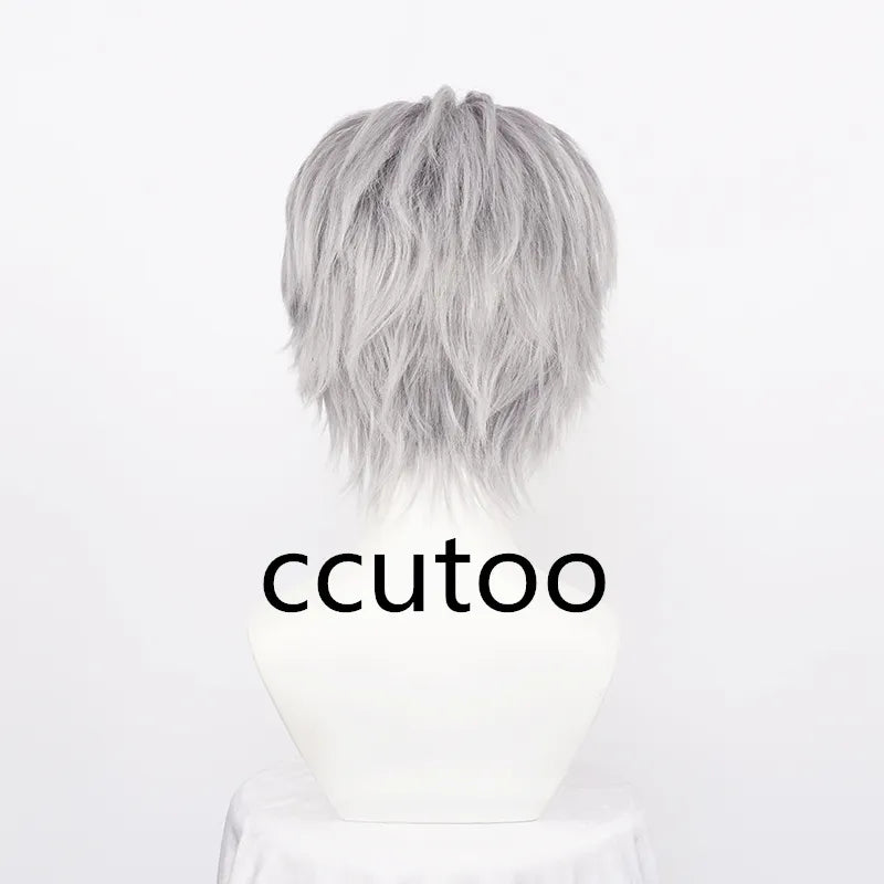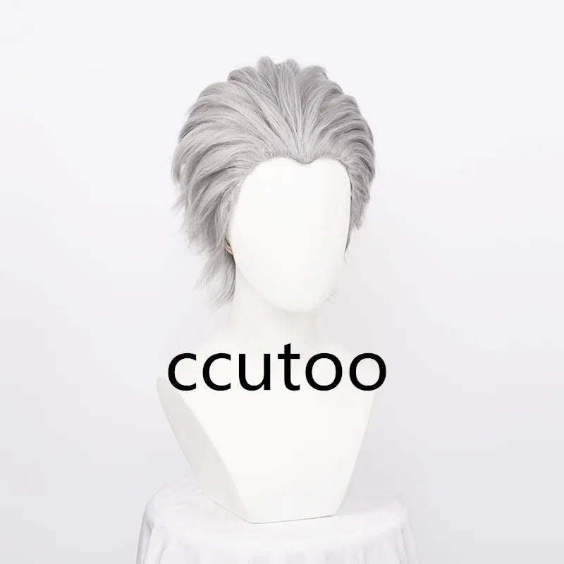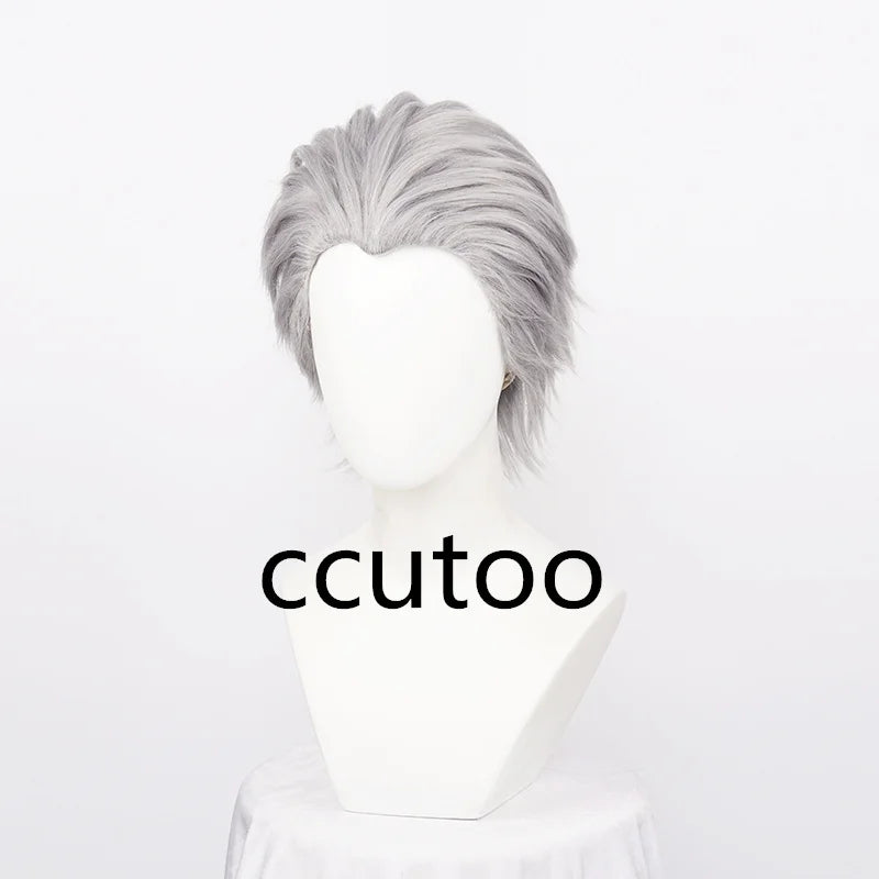 Men's Synthetic Vergil Cosplay Wig Short Silver Grey Slicked-back Hair Heat Resistant Hair Wig + Wig Cap