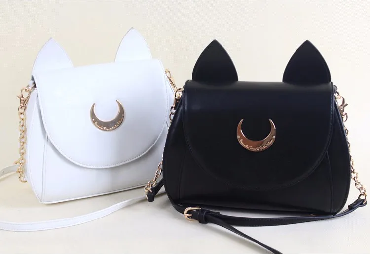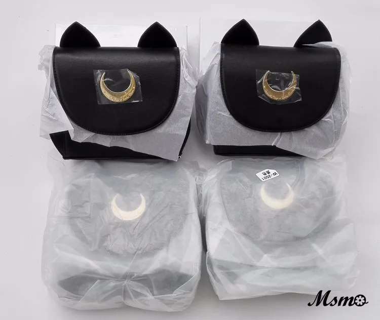 MSMO White/Black Sailor Moon Luna/Artemis Shoulder Bag Ladies Luna Cat Leather Handbag Women Messenger Crossbody Chain Small Bag