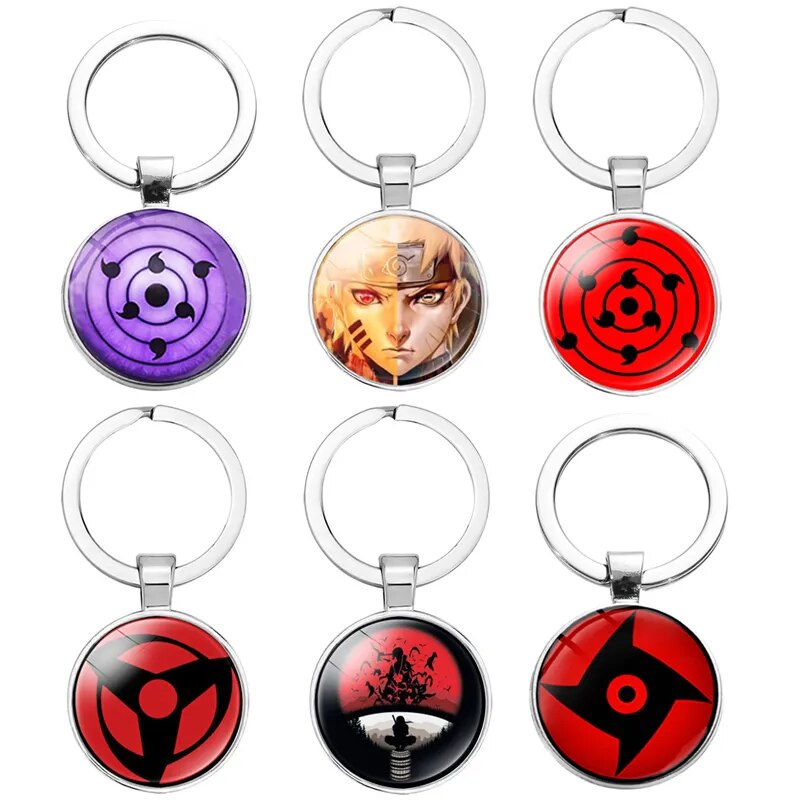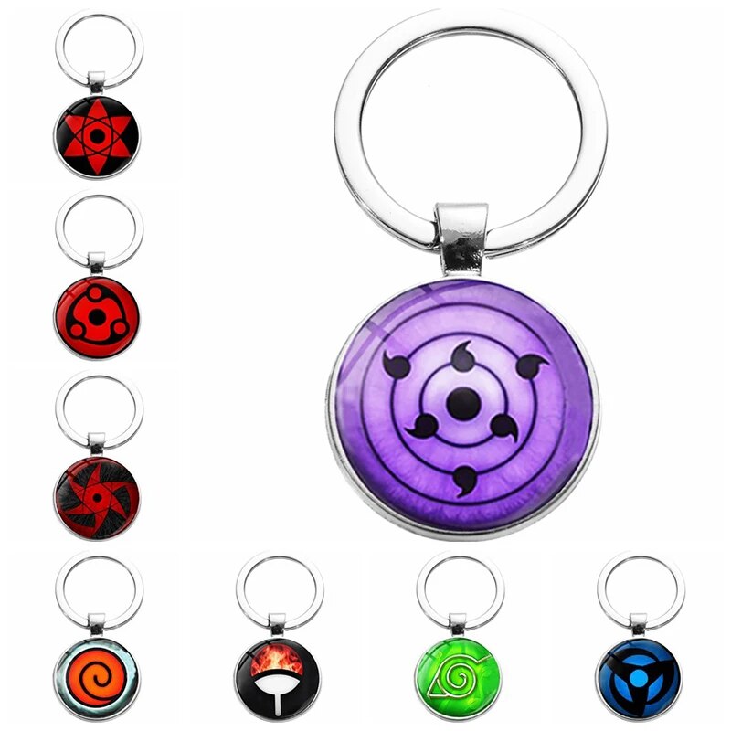 Naruto Sharingan Eye Keychain Accessories Anime Cartoon Uchiha Clan Cabochon Cool Stuff Key Ring Pendant Toys for Children Gift