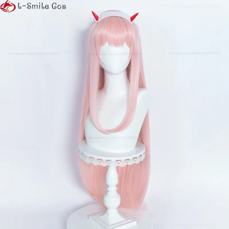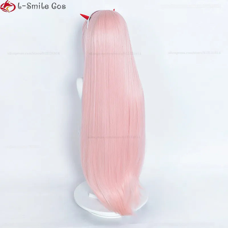 New 100cm Long Zero Two Cosplay Wig Anime DARLING in the FRANXX 02 Cosplay Wigs Pink Heat Resistant Hair Wigs Headwear + Wig Cap