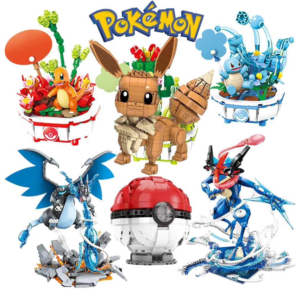 New Classic Anime Pokemon Center House Pikachu Greninja Mewtwo Charizard Venusaur Building Blocks Bricks Sets Model DIY Toy Gift