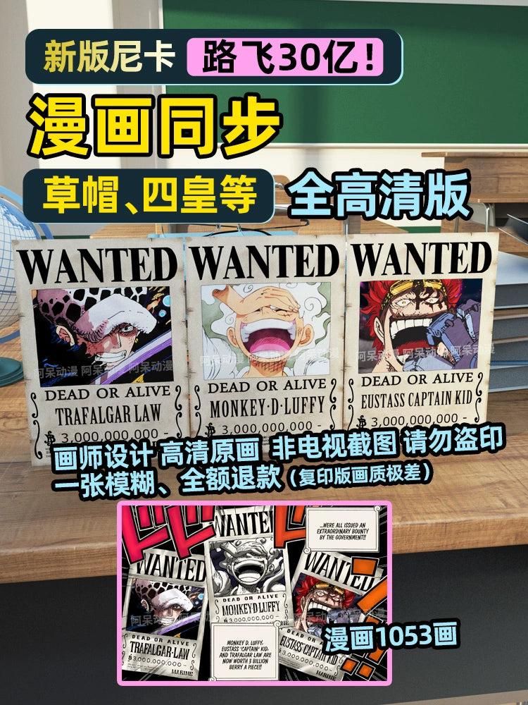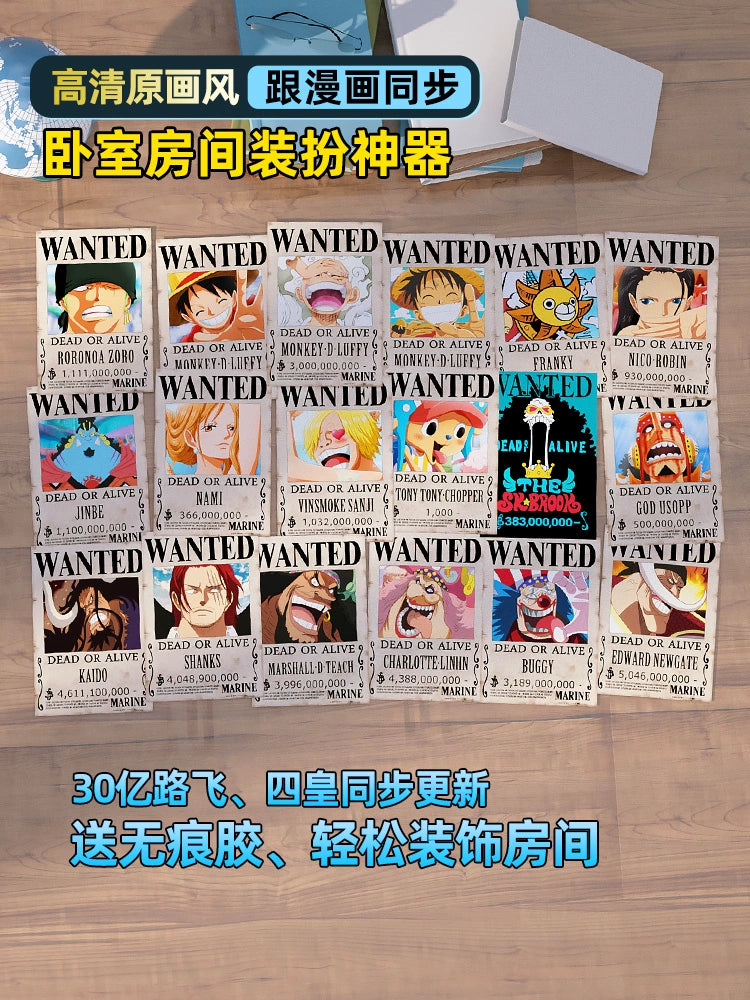 One Piece Wanted Poster Straw Hat NICKA Luffy 3 Billion Reward Wall Stickers Anime Peripheral Wallpaper Wallpaper